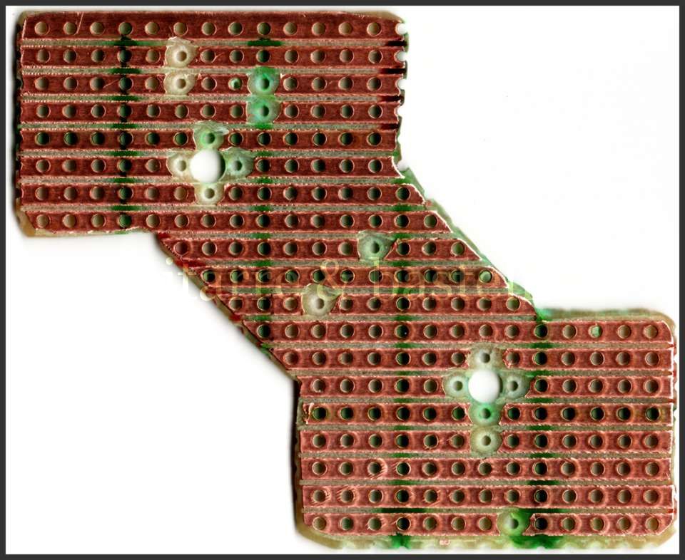 Die Darstellung auf der Kupferseite soll schon etwa die Herstellung der Platinenform verdeutlichen (die Darstellung ist der Einfachheit halber gespiegelt):