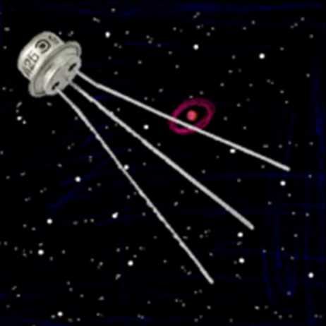 Ein Icon zum Artikel über Modifikationen des klassischen Trebleboosters mit Germaniumtransistoren – im konkreten Fall mit sowjetischen МП21. Die hohe Zeit dieser Technologie fiel in etwa in die Zeit des ersten Sputniks – die Illustration sollte beides in Zusammenhang bringen.
