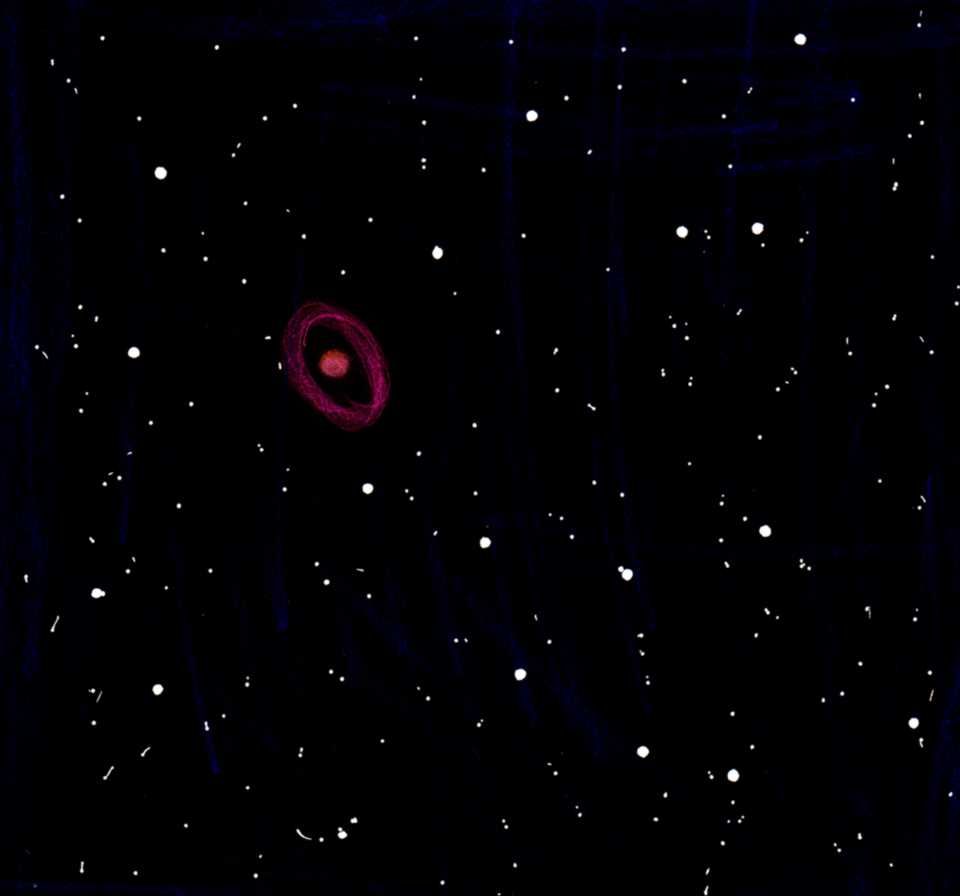 Bildertabelle 3.1: Eingescannte Papierzeichnung, deren Farbinvertierung und Farbanpassung für einen Weltraumhintergrund.