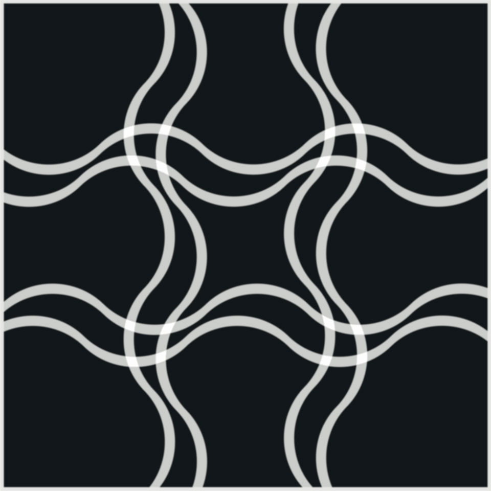 Die ersten vier Wiederholungen (je eine in jeder Richtung – nach oben, nach unten, nach rechts und nach links) werden „ver-und-et“ und weiß gesetzt; d. h. die Flächen, an denen sich jeweils zwei Kurven überlagern, werden aufgehellt (weiß, siehe linkes Bild).