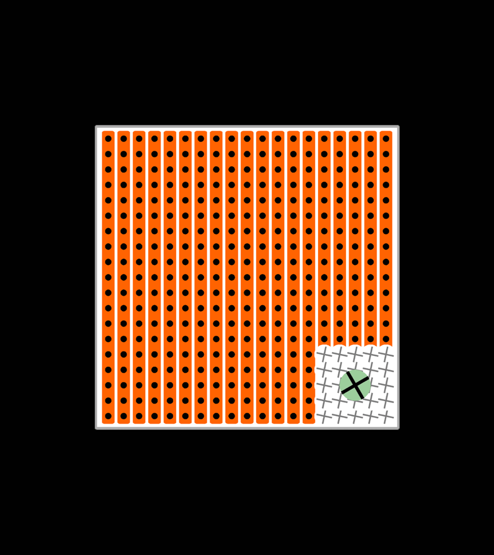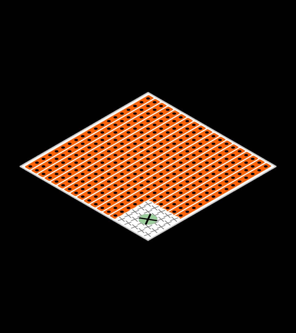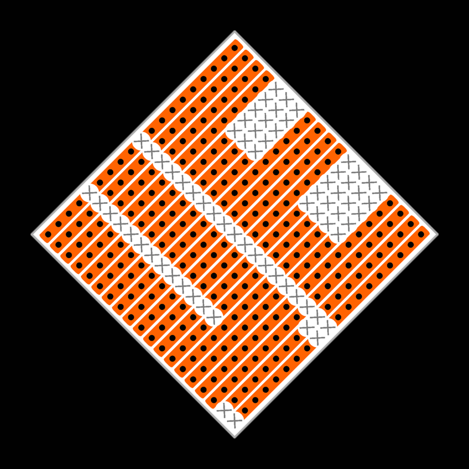 Diese Anordnung wird kopiert, anschließend um 90° gedreht und über die ursprüngliche Anordnung gelegt (rechtes Bild).