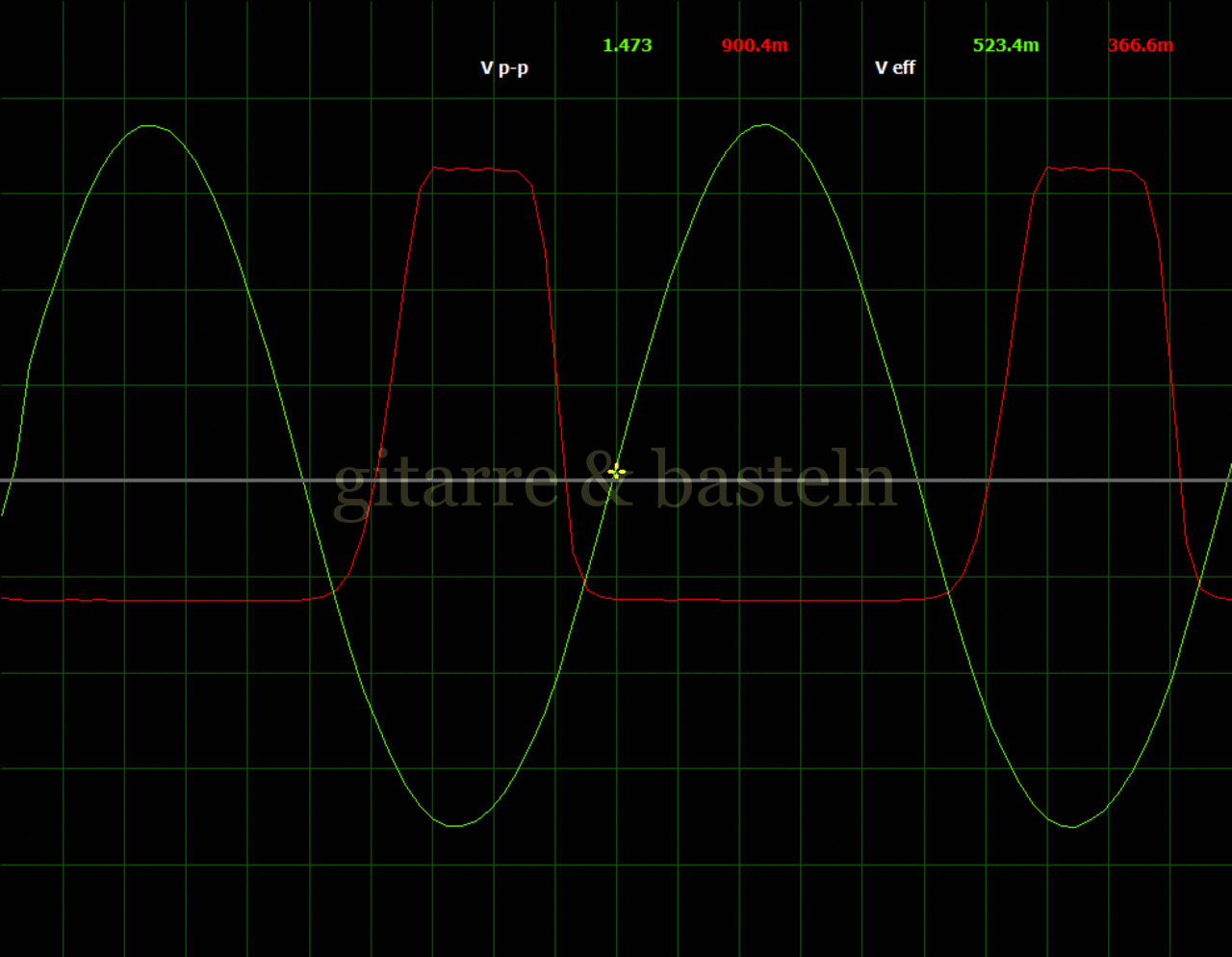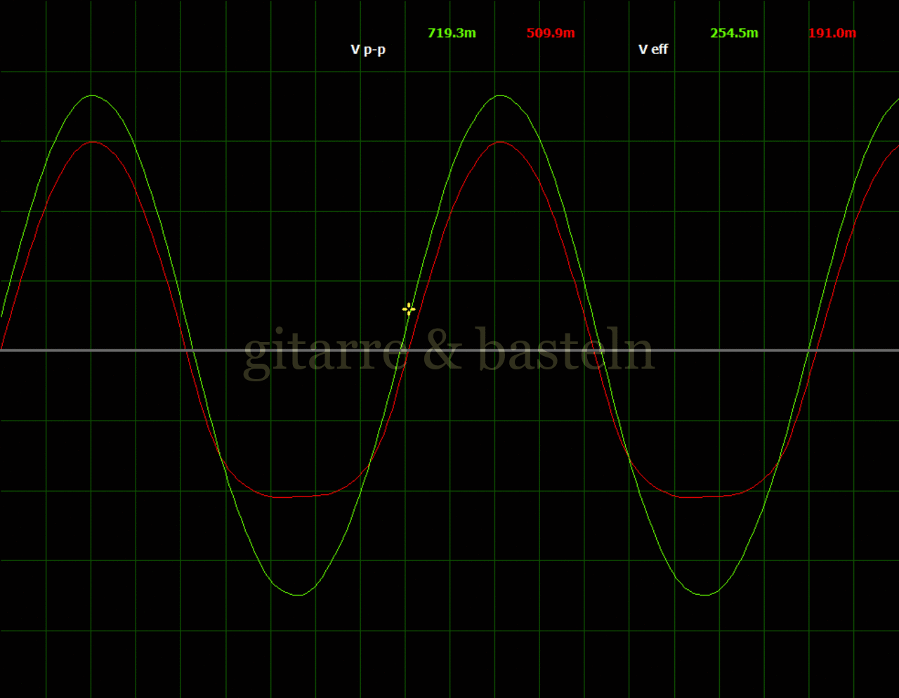 Die ersten Messungen und Oszillogramme (speziell Messschaltung B.1) dienen weniger der Überprüfung eigener Hypothesen oder Schaltungsideen, sondern eher einer ersten Orientierung und Visualisierung des dynamischen Verhaltens insbesondere des Rangemaster Trebleboosters.