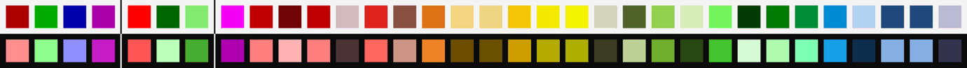 Der dritte und größte Abschnitt in der Farbleiste enthält diese 26 Farben, in denen sich mehrere Untergruppe finden lassen: